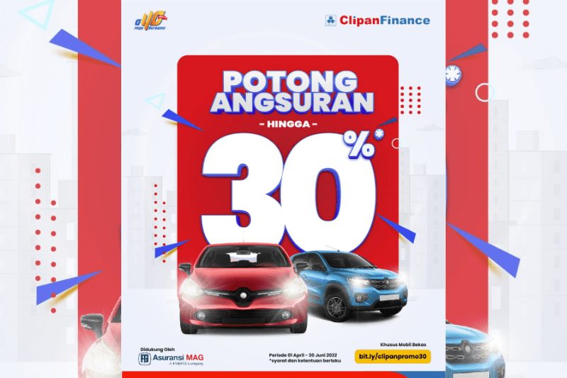Adapun promo Clipan Finance ini dilengkapi dengan persyaratan yang mudah dan menarik, seperti batas maksimal potongan angsuran adalah 30% yang disesuaikan dengan masa tenor dan program berlaku mulai dari 1 April hingga 30 Juni 2022.