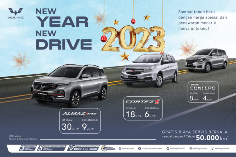 JAKARTA, beritaatpm.id - Menyambut tahun baru, Wuling mengadakan program bertajuk ‘New Year, New Drive 2023’ yang berlangsung selama Januari 2023 secara nasional. Melalui promo ini, konsumen dapat dengan mudah memiliki lini produk Wuling melalui penawaran menarik mulai dari uang muka ringan, cicilan terjangkau, sampai dengan gratis biaya servis berkala.